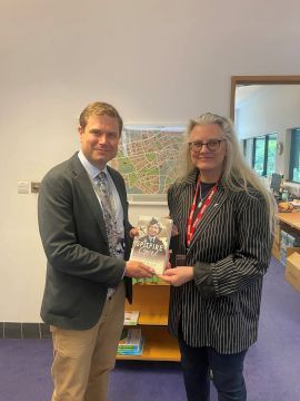 Following a talk about Women in Intelligence to pupils at the prestigious Kent school for girls Melody presented the library and Nick with a copy of her best spelling non-fiction book, A Spitfire Girl.